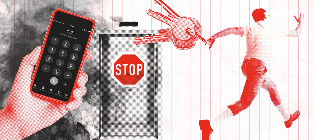 - Mobiltelefon und Schlüssel mitnehmen Ein Mobiltelefon ist ein wichtiges Mittel im Notfall. Mit einem Mobiltelefon können Sie auch einen Notruf absetzen, wenn die SIM-Karte abgelaufen ist – der Akku muss allerdings aufgeladen sein. Wenn es in Ihrer Wohnung brennt, ist es natürlich wichtig, so schnell wie möglich die Feuerwehr zu alarmieren. Aber ein Notruf dauert eine Weile: Die Leitstelle muss Informationen zum genauen Ort, zur Lage usw. bekommen und wird Fragen stellen. Dafür ist in einem Raum, in dem es brennt, keine Zeit. Sie sollten sich deshalb erst in Sicherheit bringen, bevor Sie den Notruf absetzen. Beim Verlassen der Wohnung sollten Sie unbedingt Ihren Schlüssel zum Wohnungseingang mitnehmen (Bild 1).