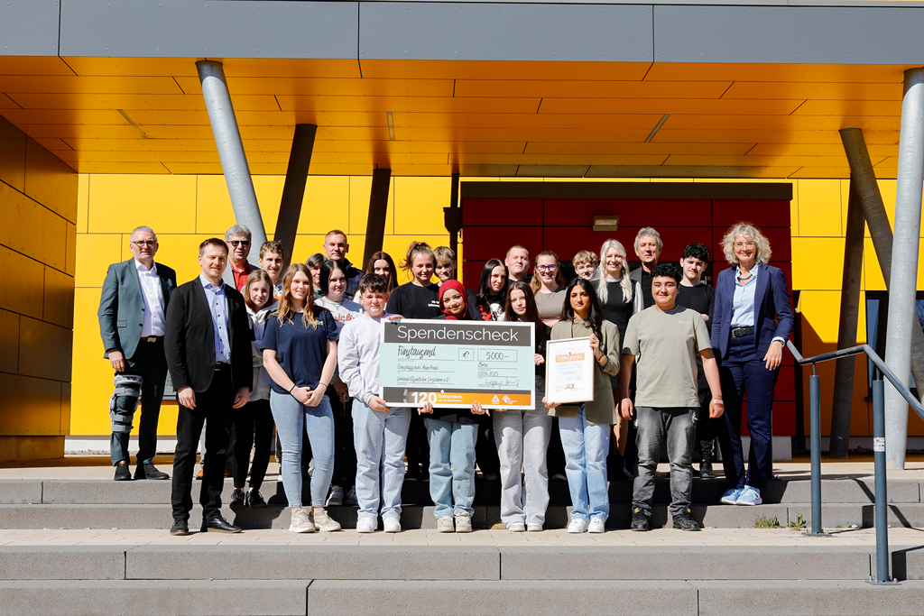 Die feierliche Preisverleihung fand am 3. April 2025 in der Ganztagsschule Anne Frank in Hettstedt statt. Die Schule aus Sachsen-Anhalt wurde für ihren herausragenden Beitrag „Stay Safe: Brandschutz 4U“ mit dem ersten Platz und einem Preisgeld von 5.000 Euro ausge- zeichnet (Bild 1). Die Schülerinnen und Schüler der 8. Klasse haben mit Mikrofonen und Handy Szenen für ein Video gedreht. Gleichzeitig haben sie mithilfe von künstlicher Intelligenz (KI) einen Songtext kreiert und diesen ebenfalls mit KI zu einem Lied vertont. So ist ein einprägsames und außer- gewöhnliches Musikvideo entstanden.